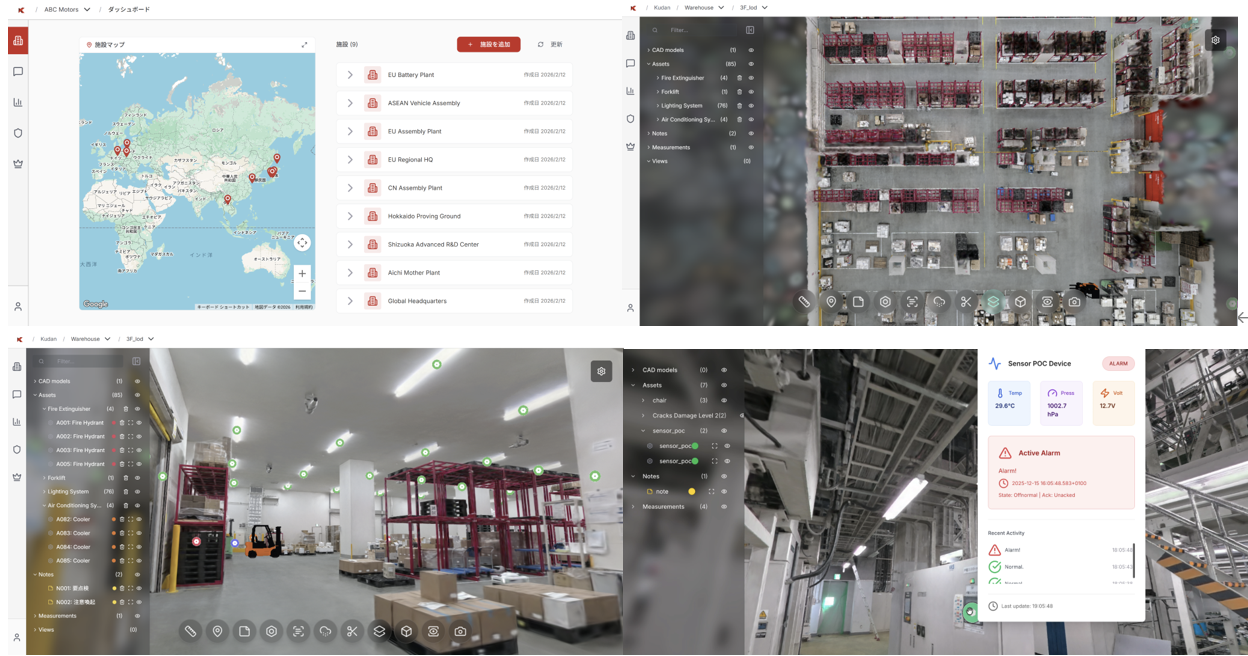 Kudanは本プラットフォームを通じて、現場と経営をつなぐ空間データ統合基盤を構築し、分断された資産情報を統合された経営資源へと転換します。これにより、産業分野における高度な意思決定を支援するとともに、設備・インフラの維持管理効率化や技術継承のデジタル化といった構造的課題の解決を推進してまいります。